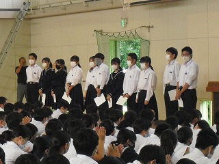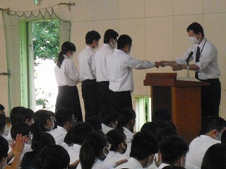 先週、前期と後期の学級役員や生徒会の入れ替わりとなる認証式が行われました。