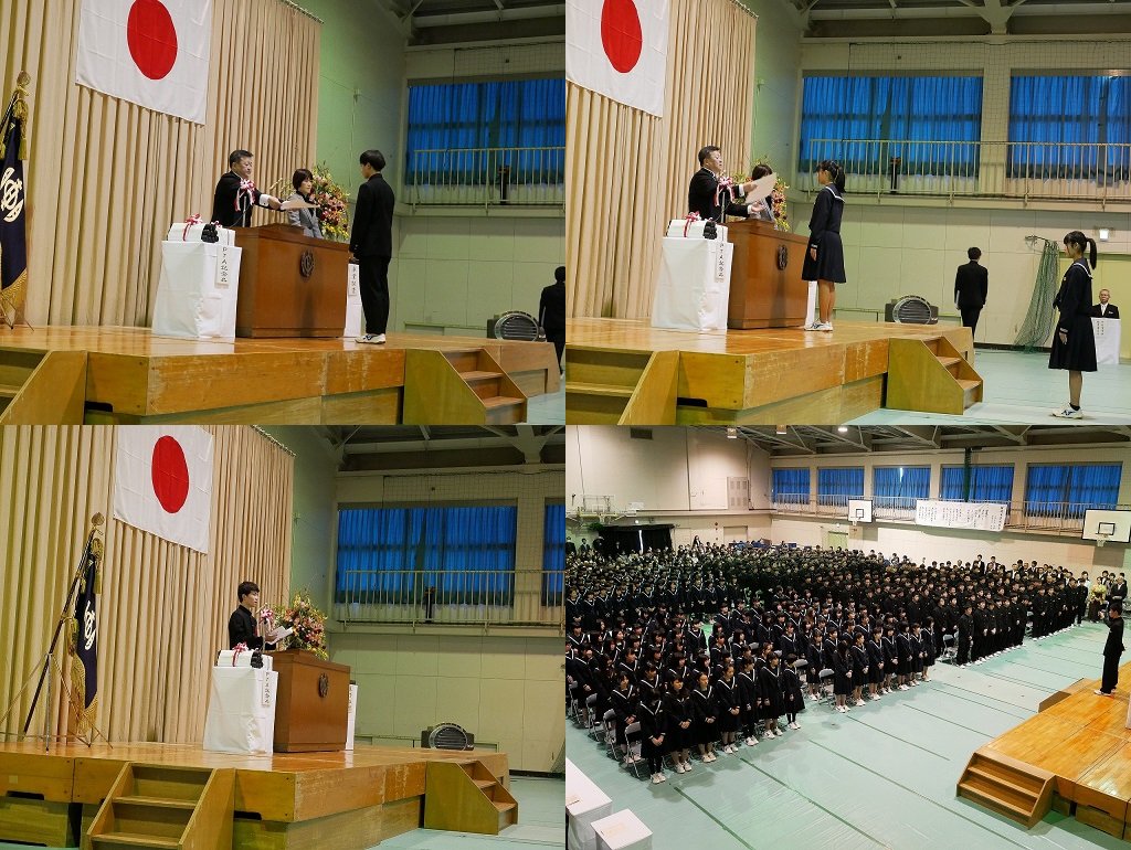 保護者の皆さま、お子様のご卒業を心よりお慶び申し上げます。本日、立派に成長した姿は、皆様がお子様の声に耳を傾け、暖かな眼差しで見守り、励まし、応援し続けていただいたおかげであります。今日までのご苦労に敬意を表しますとともに、お子様のこれからの更なる成長を心よりご祈念申し上げます。そしてこれまでに本校にいただきましたご厚情に感謝し、心より御礼申し上げます。今後も地元の中学校として、温かく見守っていただきますようお願い申し上げます。