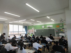 本日から1・2年生は学年末テストです。いよいよ学年最後の定期テストです。準備を怠らず、最後まで自分で培ったできる限りの力を出し切ろう。3年生は昨日まで三者懇談会でしたが、本日から通常の日課です。放課後は生活安全委員会の皆さんが安全指導(並列走行の禁止などの呼びかけ)を一生懸命行っていました。
