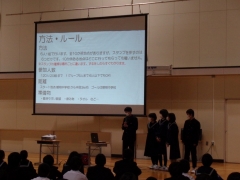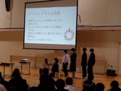 各クラスで、学んだ内容から地域を盛り上げるイベントを企画しました。今回は各クラスの代表の発表でした。