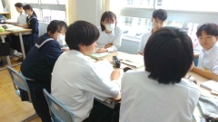 3年生の授業中に、お互いのノートを紹介しあう活動を行っていました。