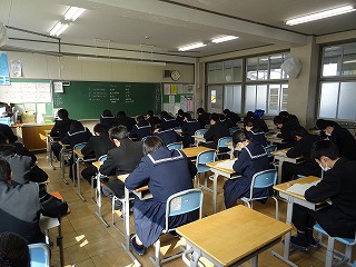 3年生は本日から3日間卒業テストがあります。ここ朝明中学校で学んだ3年間を発揮できるように全力で取り組んでください。