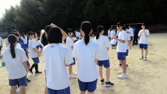 続いて、全員リレーの試走。実行委員が中心となって、並び順の確認、整列の指示をしていました。自分たちで作り上げる体育祭、さすがです!