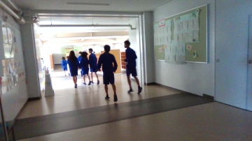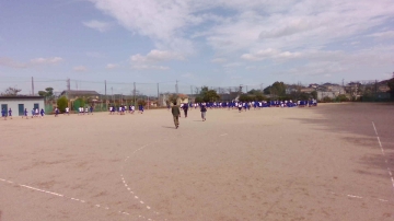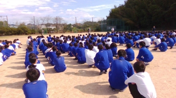 中間テストも終わってやれやれ…と思っていたら、突然の避難訓練開始!地震が発生したことを想定し、全校生徒で運動場へ避難を開始しました。校内では「おはしも」(おさない、はしらない、しゃべらない、もどらない)を意識して避難をし、外に出てから全速力で走る生徒たち。教頭先生からは、自分の身は自分で守ることや、家族との集合場所の見直しをしておくなど、ふだんからの心がけの大切さについてお話をいただきました。