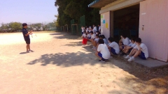日差しがきつくなってきたため、適宜水分補給をしながらの練習です。