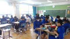 休み時間が終わりそうになると、生徒たちは自然に着席しレポートづくりの続きをしていました。室長が何かを言わなくても静かに始められるのは、成長の証ですね。これが朝明中3年生の力!
