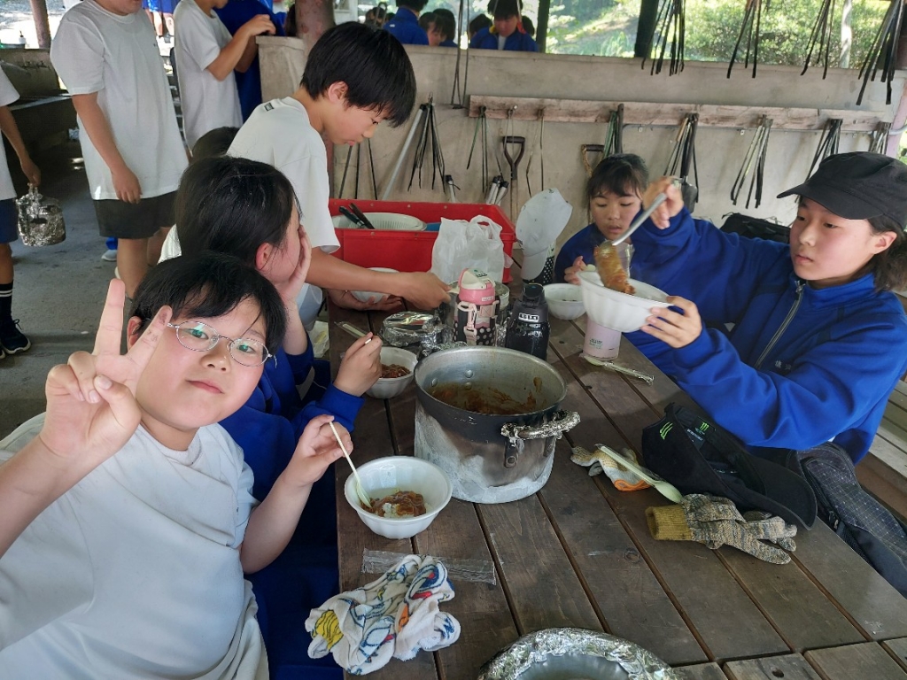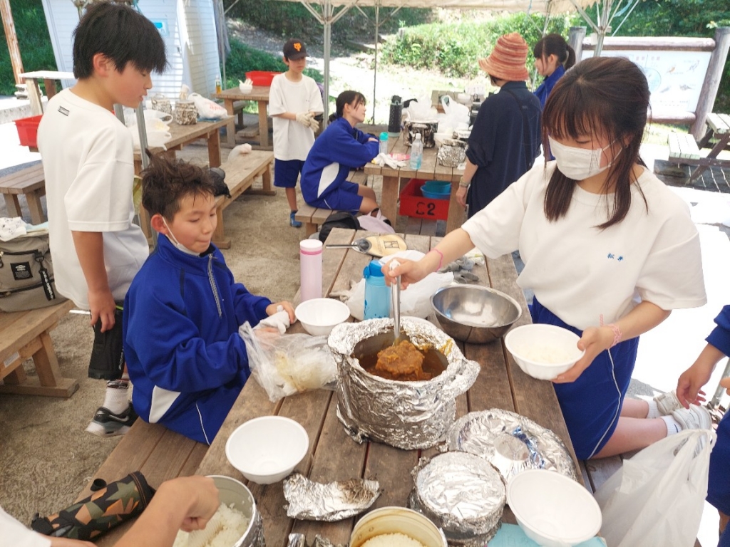 自然教室2日目その⑦ カレー完成!いただきます