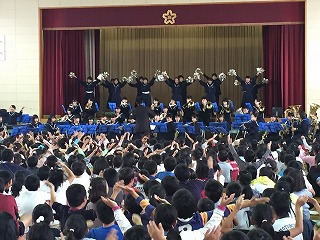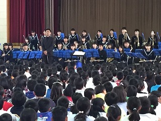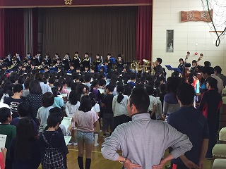 本日は、大矢知興譲小学校の全校児童さんの前で、演奏会を行いました。