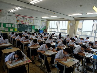 中間テスト1日目が行われました。本日は理科、英語、国語でした。学習してきたことを十分発揮できましたか。明日は社会と数学です。がんばりましょう。なお18日はテスト終了後、5時間目まで授業となります。