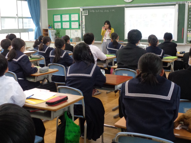 1年生の教室では英語の発音練習。元気な声が微笑ましいです。