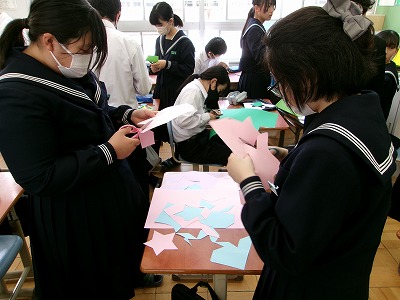 みんなで協力してクラスに飾るクラス目標を作っています。