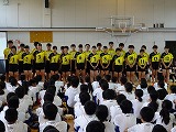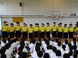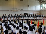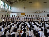本日は夏の中体連大会にむけた壮行会がありました。返事やあいさつ、立ち振る舞い、キャプテンの抱負などから、どの部活動も最後の大会に向けて一生懸命練習してきたことがうかがえました。試合に出場する皆さん、教頭先生の話にもあったように、程よい緊張感を持って試合に臨めるように残りの練習をがんばってください。健闘をお祈りします。