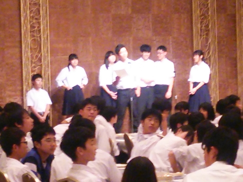 修学旅行2日目、夕食後の活動として、学年レクを行いました。各クラスのレク係がそれぞれ、朝明中に関わるクイズやゲームなどを企画し、学年の絆を深め、笑顔を広めました。