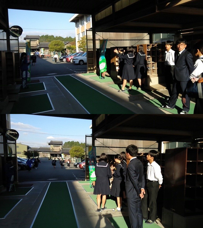 生徒会本部と代議員さんによる朝の挨拶運動です。とてもさわやかな朝、みんなの元気な声のあいさつ、大変気持ちよく1日がスタートします。