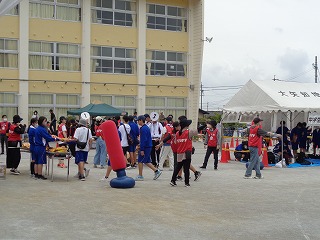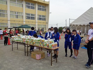 ゴールの先で参加賞を配ったり、バザーのお手伝いをしたり。
