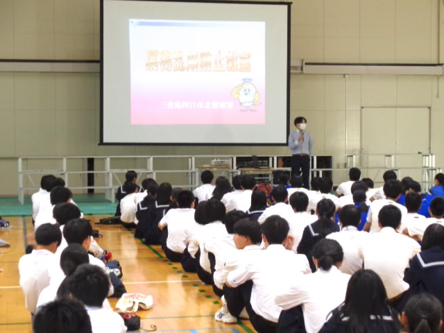 四日市北警察署生活安全課の方をお招きして、薬物乱用防止教室を開催しました。