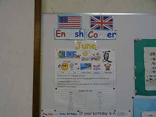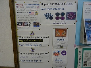 生徒のみなさんの多くが1日1回は通る場所。そこにはさまざまな掲示物が貼られています。各学年の取り組みや様子がよくわかる写真付きの文章や季節によって顔を変える学校の風景。美術の授業で創り上げた作品の数々。そしてそれらの中に英語のコーナーがあることを知っていましたか。YEFのChris(クリス)先生が毎月、新しい情報に更新してくれています。その月の誕生石やアメリカではその月にどのような行事があるのか、などたくさんの情報を知ることができます。普段の英語の授業では学べないことがそこに行けば見られるかもしれません。一度立ち止まってゆっくり見てみるのも良いですね。