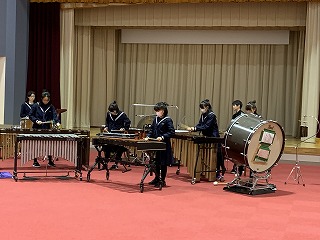 沢山の打楽器を30秒以内でステージに運んで設置するという厳しい条件のもと、打楽器演奏者7人に加えて15人の部員や先生方も補助員として参加しました。演奏の練習はもちろん、ステージでの設置の練習も何度も繰り返して本番にのぞみました。本番では、とても感動的な演奏を聴かせてもらえました。東海大会出場という素晴らしい経験をして、ますますの成長が見られました。今後の活動にも応援と期待をしています。