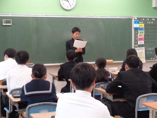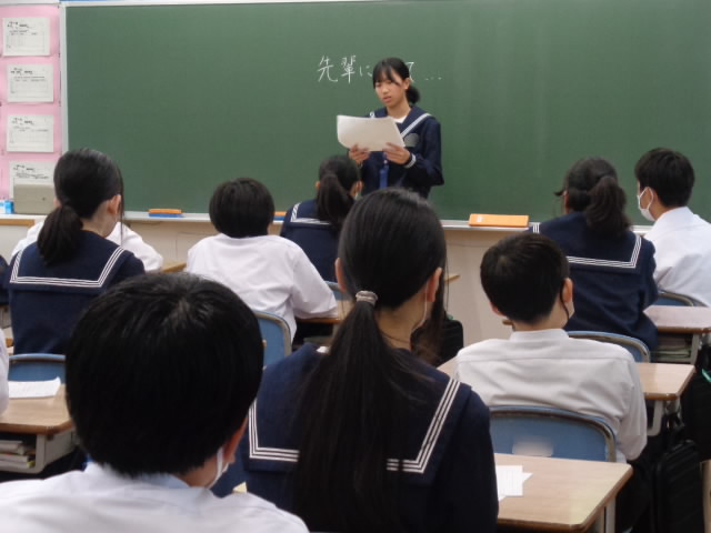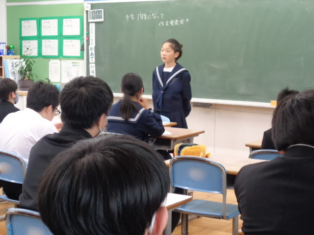 1年生は入学の抱負、2年生は先輩になって思うこと、3年生は最後の一年の決意などをそれぞれ綴りました。そのあとは学級発表会です。