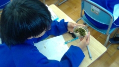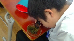 理科の授業ではシダ植物、コケ植物の観察を行いました。