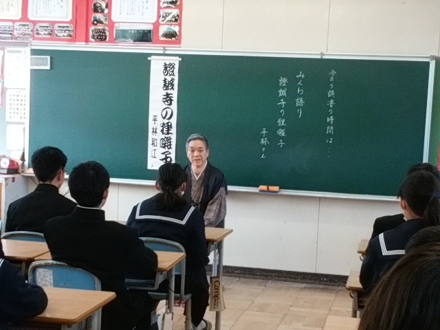 朝の学活時間に民話を聴きました。