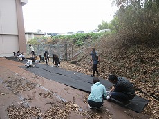 PTA 秋の植栽 防草シートはり