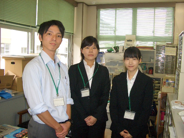 昨日から、後期の教育実習が始まり、教師を目指している3名の卒業生が教育実習に来ています。左から稲垣諒先生には、1年8組の学級指導と1年生の数学を受け持っていただきます。生川優美子先生には、1年4組の学級指導と1年生の家庭科を受け持っていただきます。須崎悠先生には、3年5組の学級指導と3年生の英語科を受け持っていただきます。稲垣先生は4週間、生川先生と須崎先生には、3週間お世話になります。短い間ですが、生徒の皆さんと少しでも多くの時間触れ合う中で、その経験を教師としての礎としてほしいと思います。