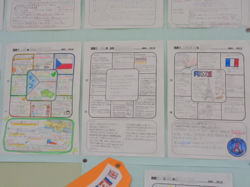 選んだ国の情報・衣食住・国旗・自然・気候・文化など、調べた情報を盛り込みます。