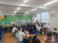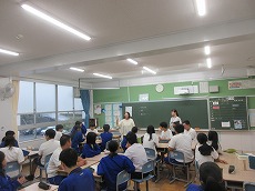 「通し練習」を各班で行いました。班員で役割分担(ナレーター、登場人物1など)し、1回読み聞かせをした後、お互いに講評しあいました。全体の指導を本校CS委員お二人にしていただきました。今後、「クラスで読み聞かせ」、「学年で読み聞かせ」さらに、「全校生徒に向けて読み聞かせ」と進めていく予定です。