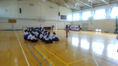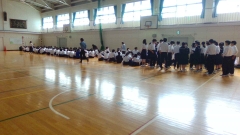 修学旅行を来週に控え、今日の学活では新幹線の乗車隊形の練習をしました。安全に全員が修学旅行を楽しめるよう、様々な集合隊形の練習もしましたね。