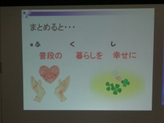 「ふくし」=「普段の、暮らしを、幸せに」ということを理解し、すべての人々がよりよく過ごせる社会を考えられるように、これから学習していきたいです。