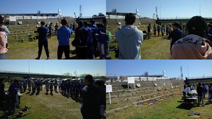 風もなく作業にはちょうどよい天候となりました。PTAの方々や、多く生徒が集まり約1時間除草作業に取り組みました。