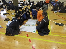 3年生が午後、避難所運営ゲーム(HUG)を実施しました。これは静岡県で開発されたもので避難所運営のさまざまな対応を考える模擬体験ゲームです。避難所で起き得る状況の理解と適切な対応を学ぶ中で、災害に対する意識の高まりや自分との関わりを考える機会となりました。ご支援、ご指導いただいたみえ減災啓発支援ネット12名の方々に感謝します。