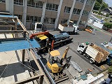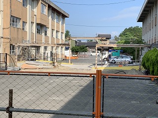 連日、工事の音が授業中に響き渡り、生徒の皆さんは先生の声も聴き取りにくい中での学習、たいへんですが、窓を閉めてエアコンをかけて調整しながらなんとかやっていきましょう。大きな音を立てての古い昇降口の解体はほぼ終わり、そのあとの新しい昇降口のためのくい打ちも始まりました。