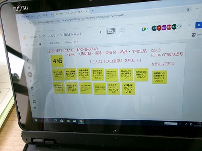 そして、「プロ意識」とは何かを考え、自分の「プロ意識」、クラスの仲間が「プロ意識」を持って行動していることは何かを考えました。