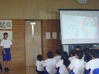 各クラスの代表が、自らの職場体験の成果を報告しました。