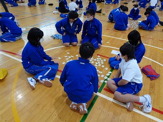 本日6限目に体育館でクラス対抗百人一首大会を行いました。