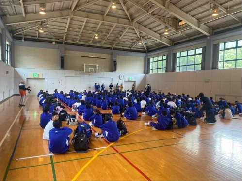 自然の家のスタッフの方からは、「自分のことは自分でしよう」とお話いただきました。「輝け!1年 朝明の絆」のスローガンのもと、二日間頑張ろう!