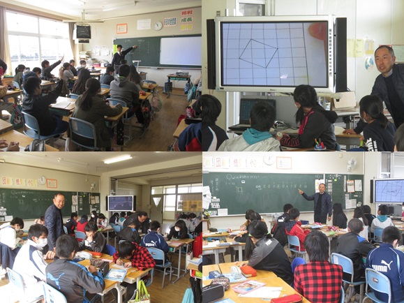 本日、朝明中学校区学びの一体化の取組の一つとして、八郷小学校6年生の算数の授業に本校の数学科教員が入り、授業(乗り入れ)を行いました。目的は、6年生の児童に中学校入学前に、中学校の授業を体験してもらうことで、少しでも中学校の学習に対する不安をなくしてもらうことです。内容は、小学校で習った正方形の面積の求め方の知識を活かし、「面積が1~10㎠になる正方形を作図する」という課題でした。1,4,9㎠はすぐにできますが、その他は小学生にとっては難問です。まず、各自でトライした後、班(グループ)になって、知恵を出し合い考えてもらいました。結果、どのクラスも2、5、8、10㎠を作図することができました。その後、それぞれの1辺の長さを求めたのですが・・・、答えは、中学校入学後の数学の授業でというところで終了しました。以下は、一人の児童の授業後の感想文です。「私は、今日の授業を受けてみてすごく楽しかったです。なぜかと言うと先生の話を聞くだけでなく、まず自分たちでやってみるというところです。①自分で考える、②班で考えるというところで、自分一人では分からなかったことも、班で考えれば考えが広がるし、本当にすごく楽しかった。今日の授業は最後まで答えが出なくて少し「モヤッ」として、休み時間を使って考えたけど、それでもわからなかったので、ちゃんと答えを出したいと思いました。先生もすぐに答えを言わずに自分たちで考える時間をくれたので、よかったなと思います。中学校へ行ったらこの答えが出るのかなと思うとワクワクします。中学校では科目別に先生がいるし算数のもっと深いところもできるのかなと思います。今日は面積についてだったけど、中学校に行ったら小学校でわからなかったことをもっともっと知りたいと思いました。算数は苦手だったけど、中学校では得意になればいいなと思いました。」