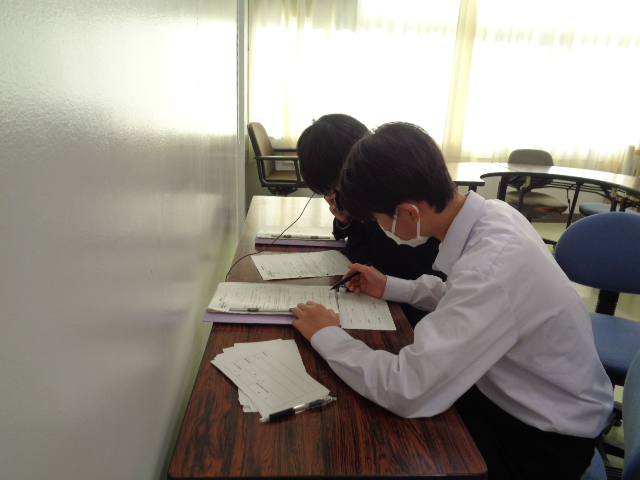 会議室、相談室、校長室に設置した電話で、緊張しながら受話器を握る朝明っ子。