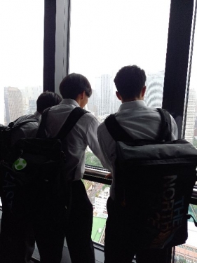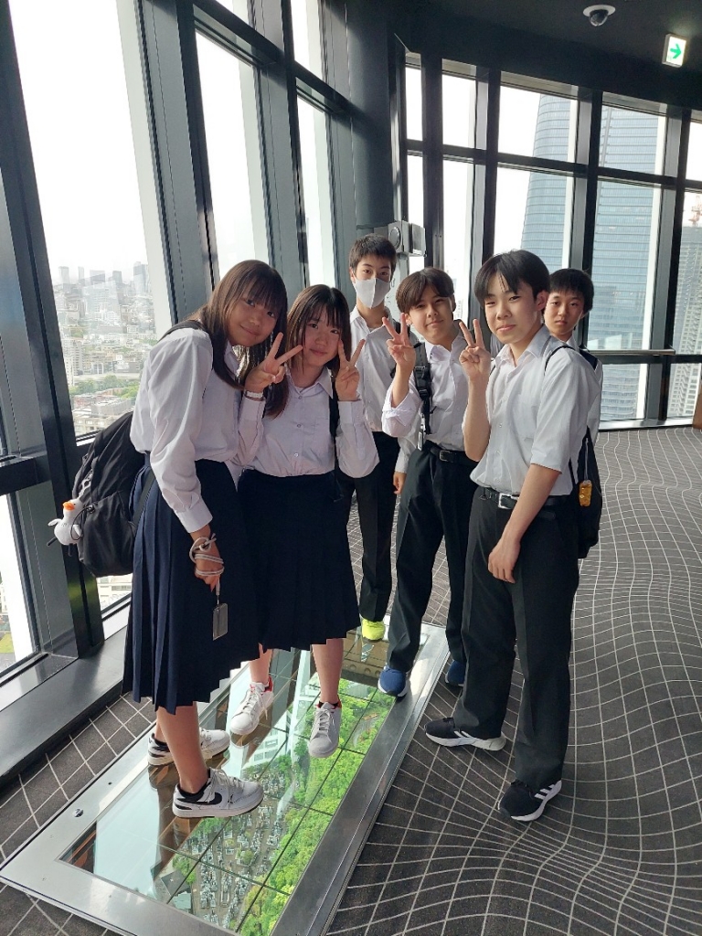 各クラス、ぞくぞくと東京タワーに到着しました。曇も多いですが、やはり見晴らしもよく、班ごとに展望台からの東京の姿を楽しんで見ていました。