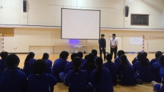 今日の4限目からは、学年全体でのレクリエーションとパフォーマンス集会を行いました。各クラスから選手を決め、それぞれの種目・会場でクラス対抗の真剣勝負です!