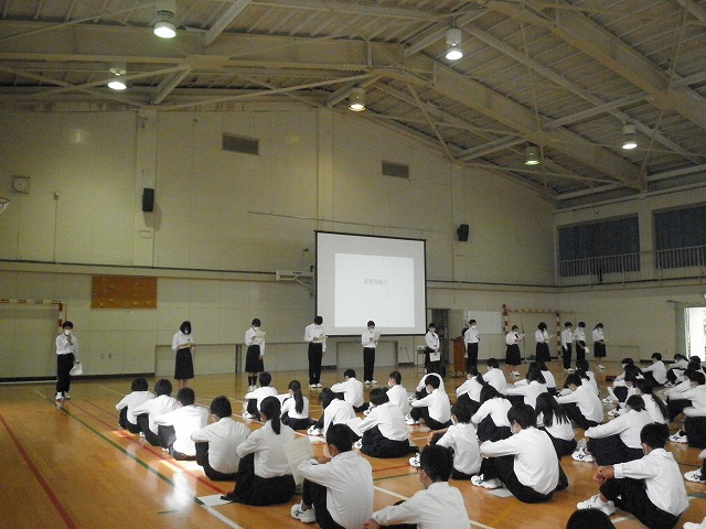 また、各クラスの室長から、『こんな学級にしたい』という思いをそれぞれ発表してもらいました。一人ひとりが思いやりをもつこと。挨拶をきちんとすること。どれも大切なことです。クラスだけでなく、学年で協力していきましょう。