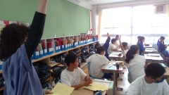 Can you~?、Do you~?の答え方の違いと意味を確認した後、実際に友達に聞いて答える活動をしました。