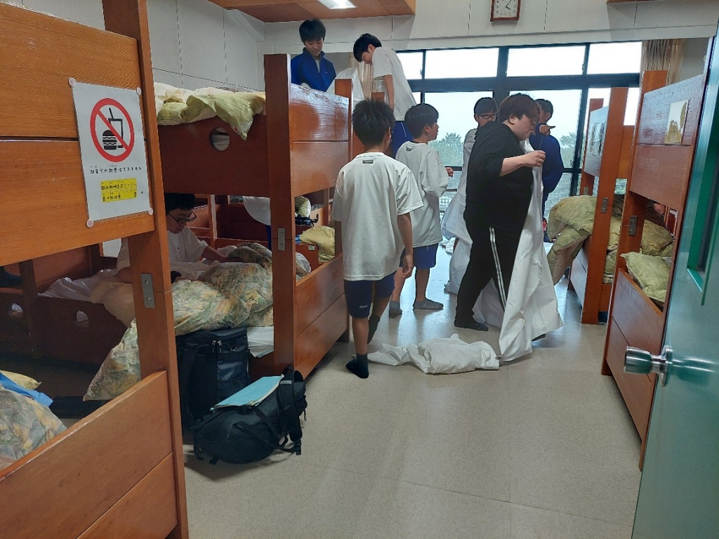 自然教室1日目その⑰ 部屋に入ってリネン準備