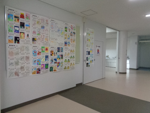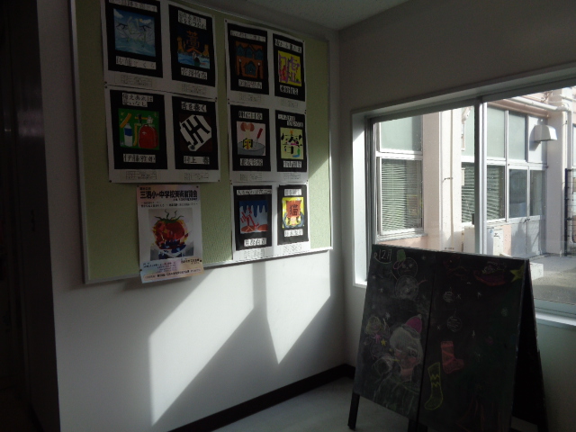 中央昇降口には、年明けの三泗小中美術展に出品予定の作品が並んでいます。