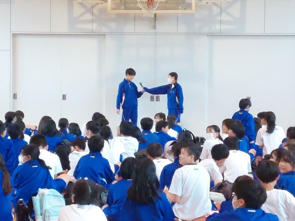 ウォークラリーを終え、少し時間があったので、体育館でプチパフォーマンス集会をしました。当日募集にも関わらず、みんなの前で芸?を披露したい強者がたくさん登場。楽しそうな笑顔と拍手で盛り上がりました。