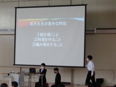 本日6限目、第2回パフォーマンス集会を行いました。今回皆さんが発表してくれたパフォーマンスはクイズ、イラスト、漫才、歌の発表、ダンス、楽器演奏と多岐にわたりました。それぞれの個性あふれる発表で、見ている私たちもとても楽しめました。これから「歌って踊れる学年」としてさらに進化し、学校を引っ張っていけるように頑張っていきましょう。