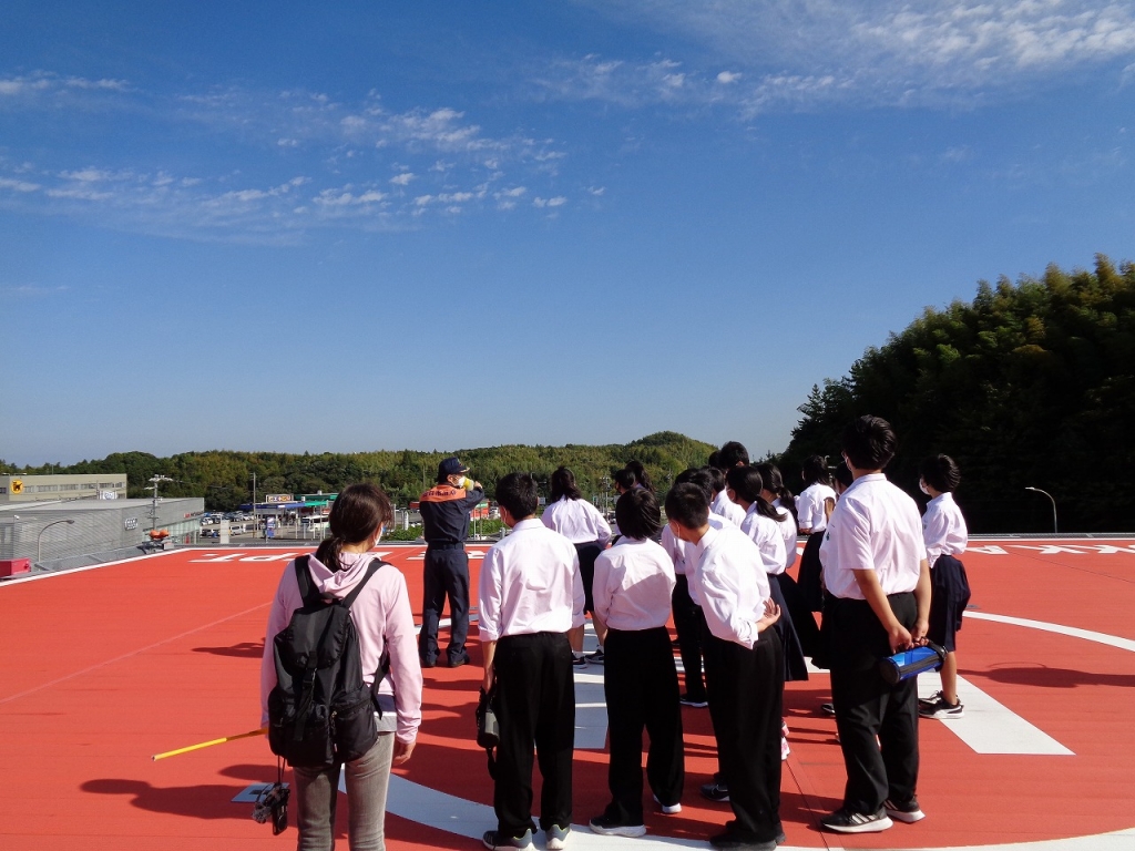 また、消防署で大きな倉庫を見学した後、救急車や消防車の設備を間近で見ながら説明をしていただき、ヘリポートにも登らせていただきました!実際に災害が起こった時のイメージがついたことと思います。