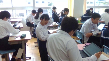 3年生の国語の授業では、論語について、インターネットで調べたことをお互いに説明しあう活動をしていました。